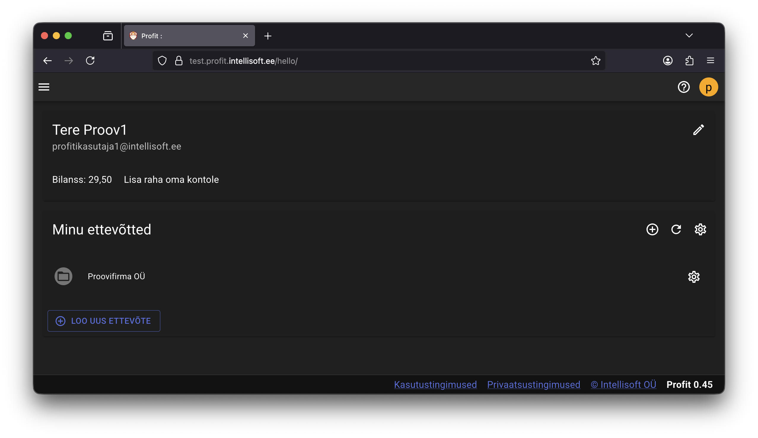 Firmade nimekiri Kõik firmad, millele teil on ligipääs, on kuvatud Profiti esilehel "Minu ettevõtted" nimekirjas. Firmasse sisenemiseks klõpsake selle nime peal.